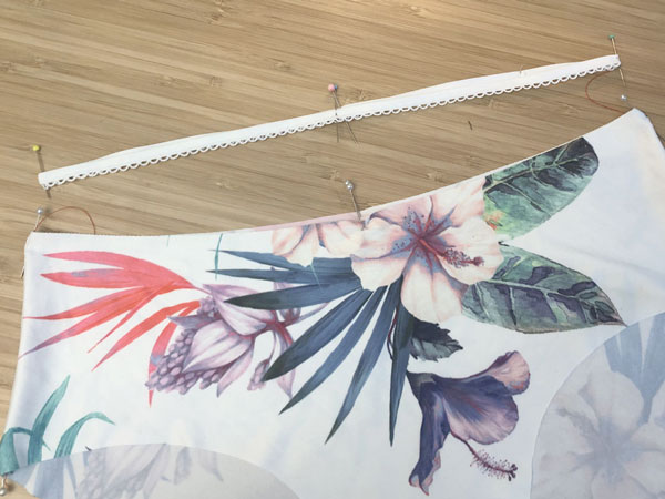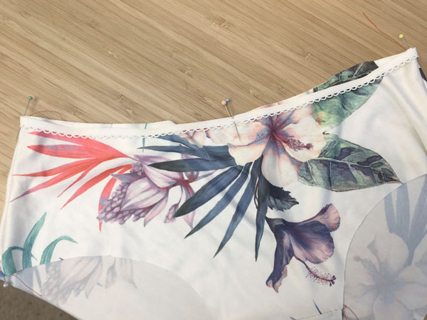 When you design panties, sewing elastic can seem a little tricky because you need to stretch it slightly as you sew it on and pulling the elastic just the right amount all the way around the seam can be a worry for a beginner.