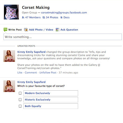 So we now have our own facebook groups for both Corset Makers and Corset Tight-Lacers!