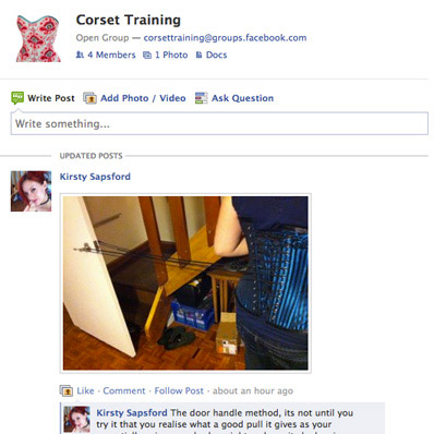 But why have I got three? Well the page is to keep you all updated with gossip and images as and when things are made, as well as give a bit more detail on technique. And with two groups we now have somewhere to chat and build an interactive community – if you’re more of a maker, join the Corset Making group and if you’re just interested in tight-lacing, check out the Corset Training Group. If you’re into both, hey, join both! Check them out by clicking any of the images: