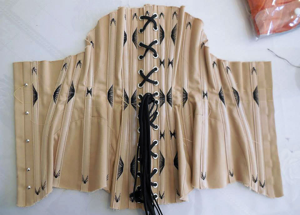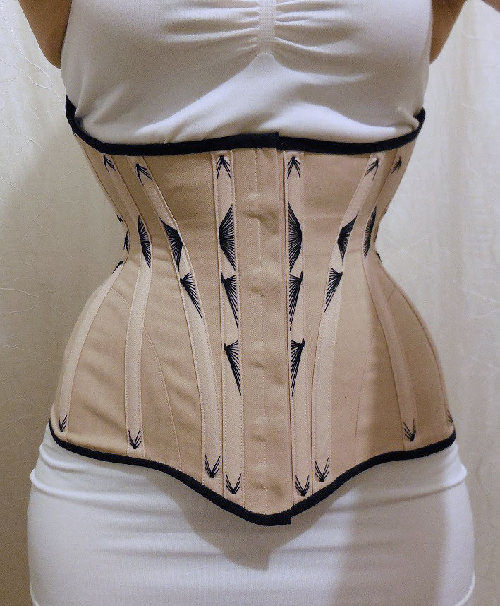 This is the corset Elizabeth made using my Angel Underbust pattern and I love love love her flossing! (the little bits of embroidery on the bone channels if you’re not familiar with the term). She comes up with amazing new designs for every corset she makes.