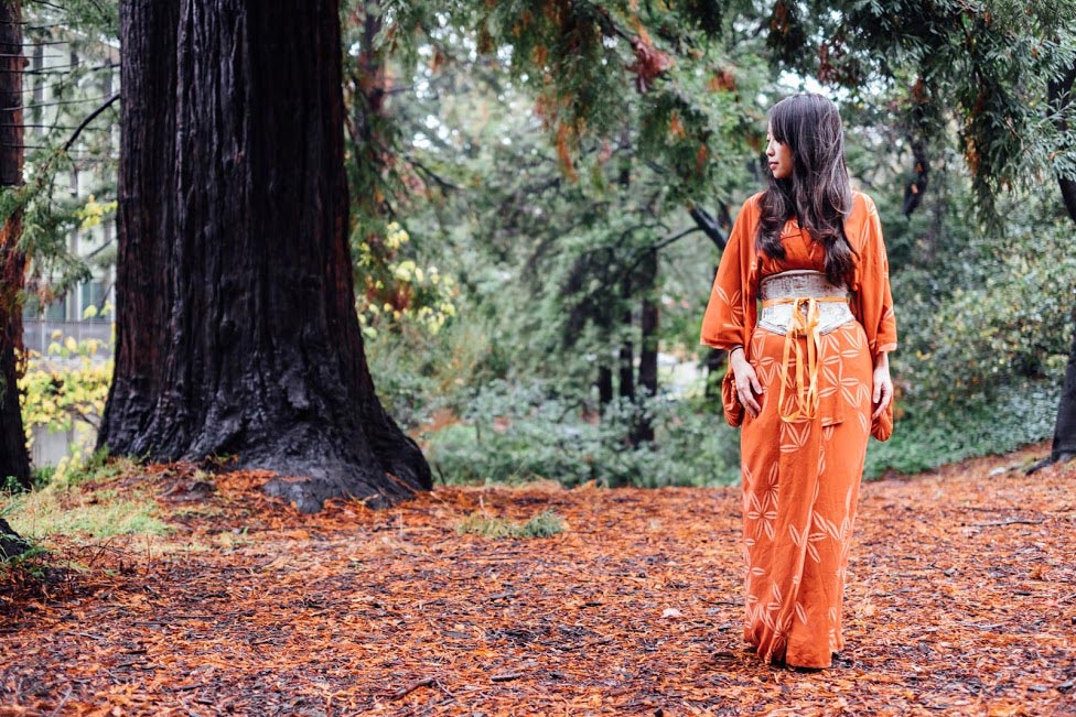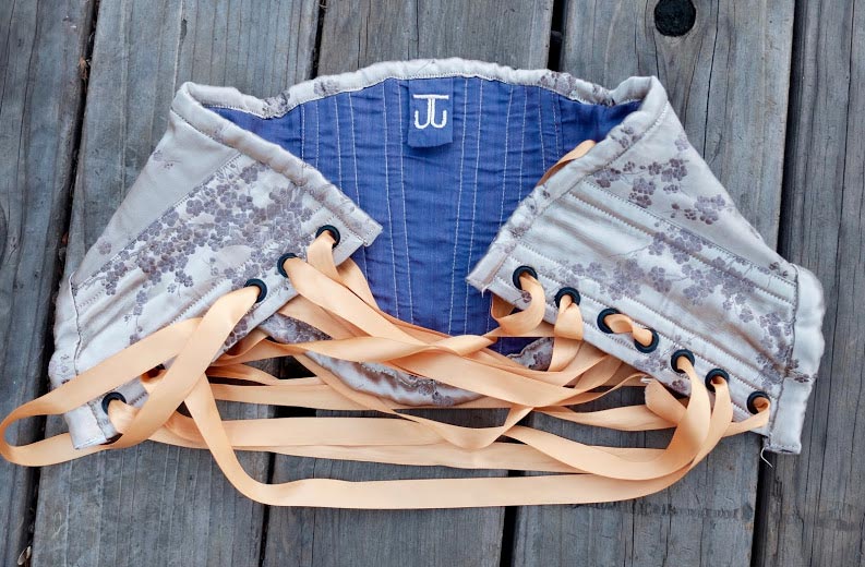 “I’ve always wanted a better belt to wear with my kimonos. I often hang out around the house in my kimonos when the kids are sleeping, with no special occasion to celebrate.[…] Anyways, you are suppose to wear an obi with your kimonos. However, tying an obi around your body without it falling off a few hours later is quite an art. Though I like the look of an obi, I’ve always thought it would be good to substitute it with a belt with boning. So after my recent discovery of corsettraining.net, I made a corset belt with the free pattern. […] As you can see, it gives some curve to a usually flat kimono outfit