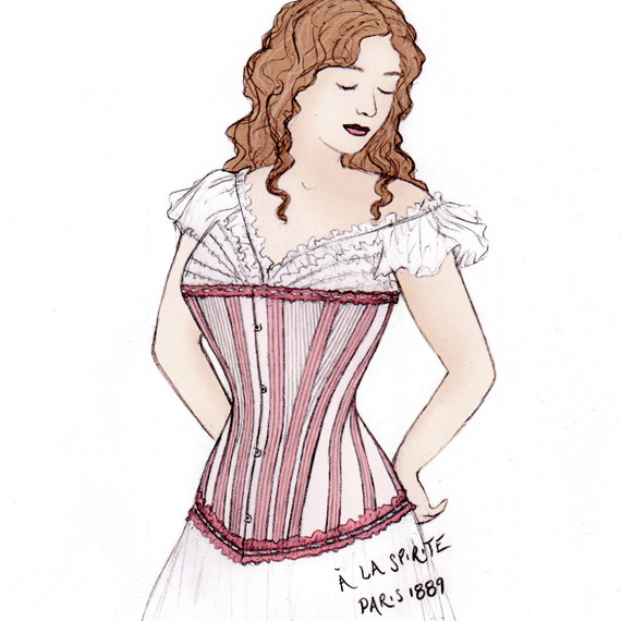 Gorgeous half bust corset with pushup effect, this flossed and heavily boned pattern is drafted straight from one of the romantic, original Parisian À La Spirite 1889 corsets and comes with detailed pictures of the original! Flossing diagrams make embroidering the bone channels simple for that striking couture look (and historical accuracy of course). Recreate the original or try the easy beginner’s boning layout if you’re less experienced. Great for improvers to intermediate corset makers.